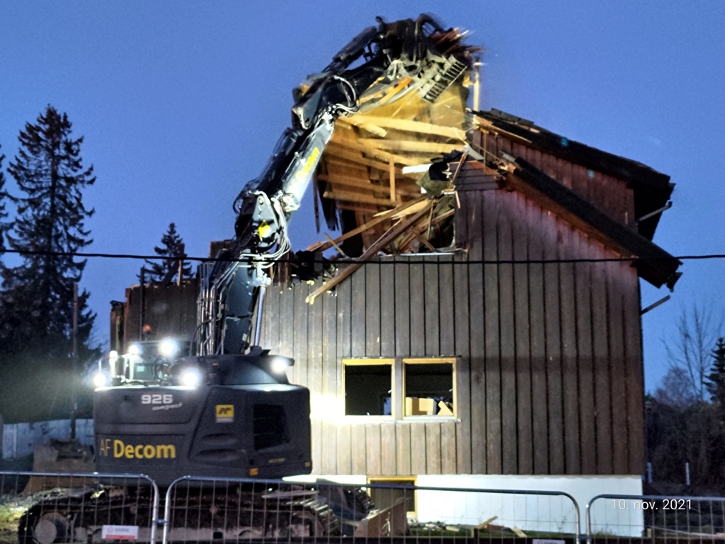 Bildet er tatt fra Gamle Ringeriksvei onsdag 10 nov og viser rivingen av Kleivveien 8.